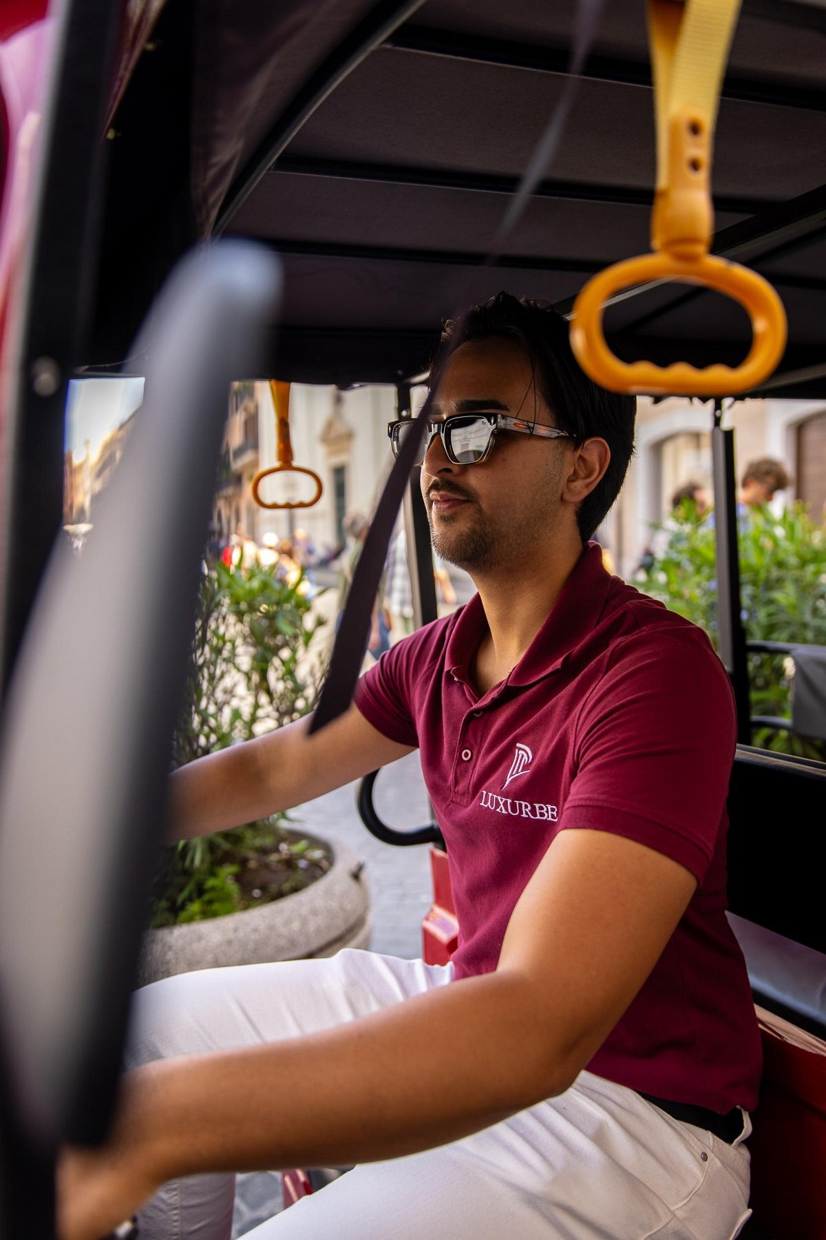 Fahren Sie in einem elektrischen E-Tuk, der bequem für die engen Straßen Roms ausgestattet ist, und hören Sie sich die Erläuterungen an, mit vielen Stopps zum Fotografieren.