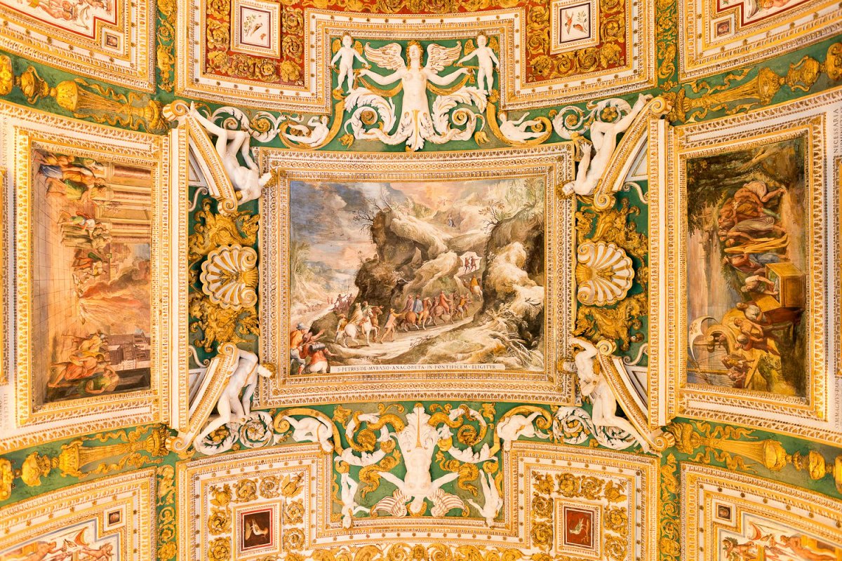 시스티나 성당의 아름다운 천장 프레스코화를 경이로움 속에 감상하세요.