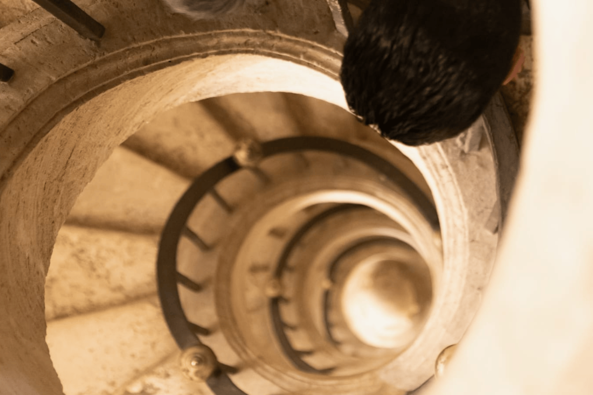 The way back leads down Bernini's famous spiral staircase into the peaceful Nave so beautifully alight and entirely devoid of visitors at night.