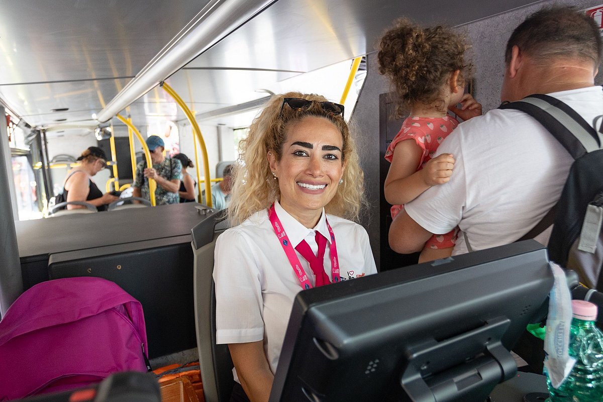 The pink buses have a comfortable seating arrangement and run all day long between the main attractions and cultural places of the city.
