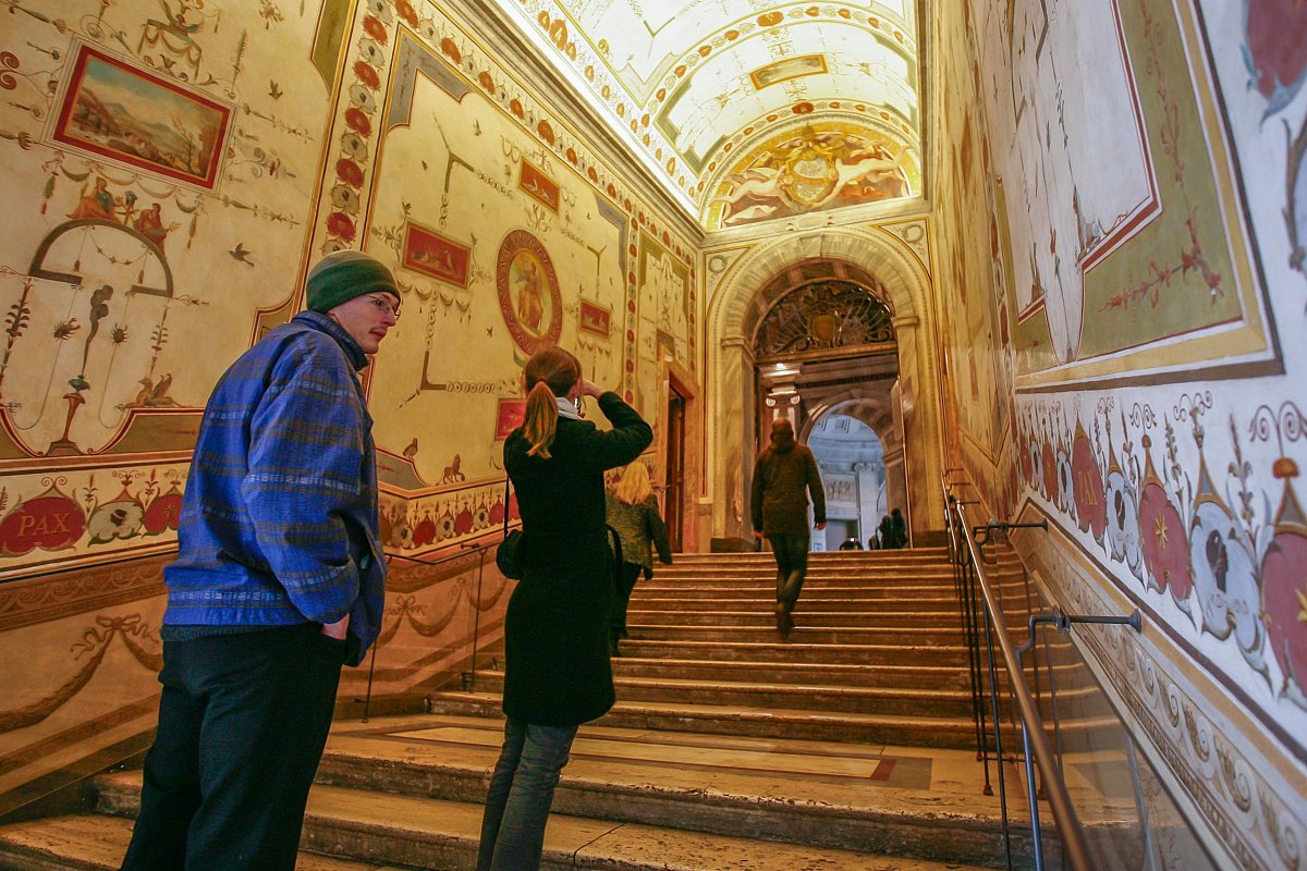 Затем погрузитесь в комнаты Рафаэля, где вы увидите известные фрески, такие как «Афинская школа», которые часто упускают из виду спешащие посетители.